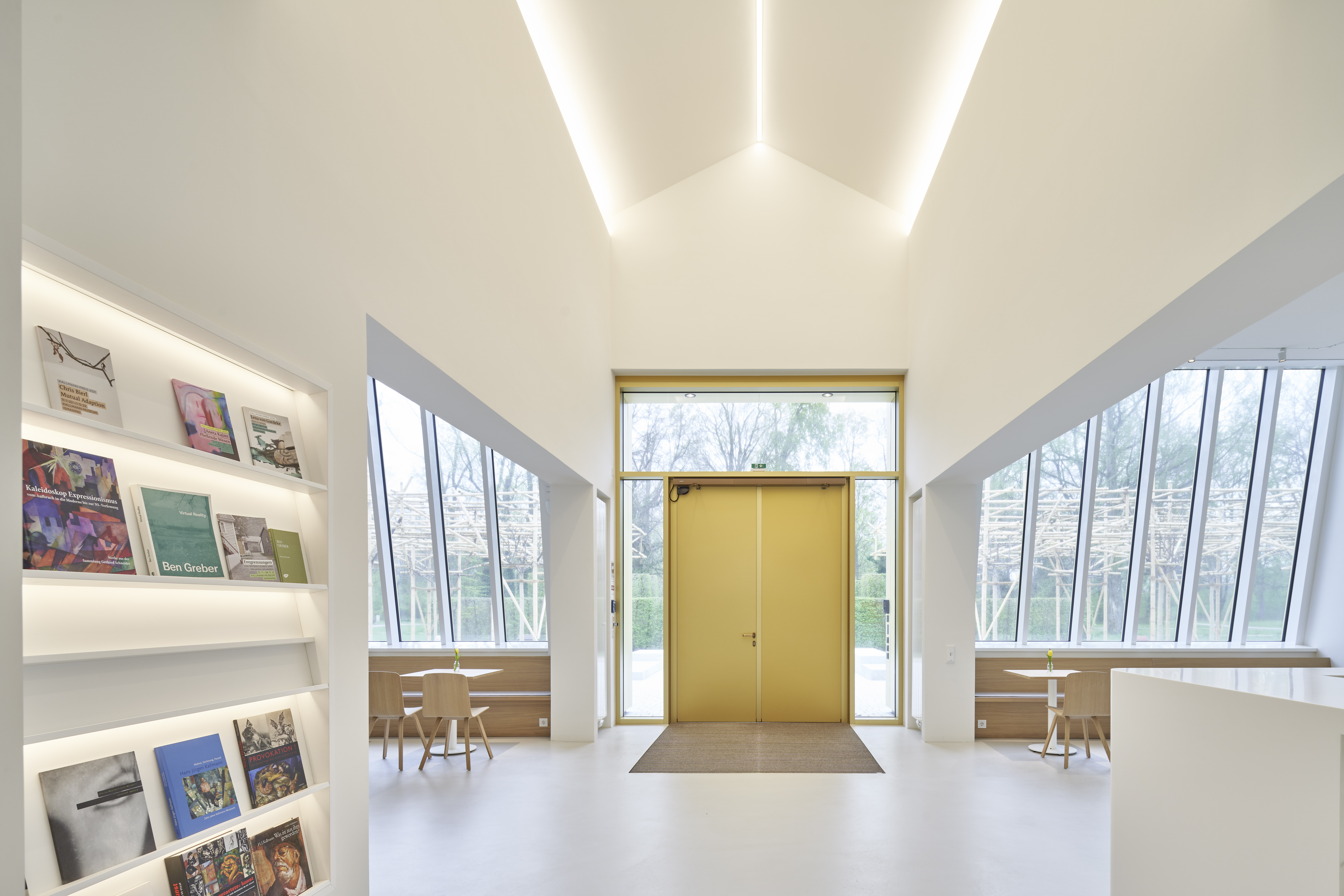 As part of the comprehensive renovation of the Kallmann Museum in Ismaning, Germany, the entrance area and café were also redesigned – with special attention to light, transparency, and thermal comfort.